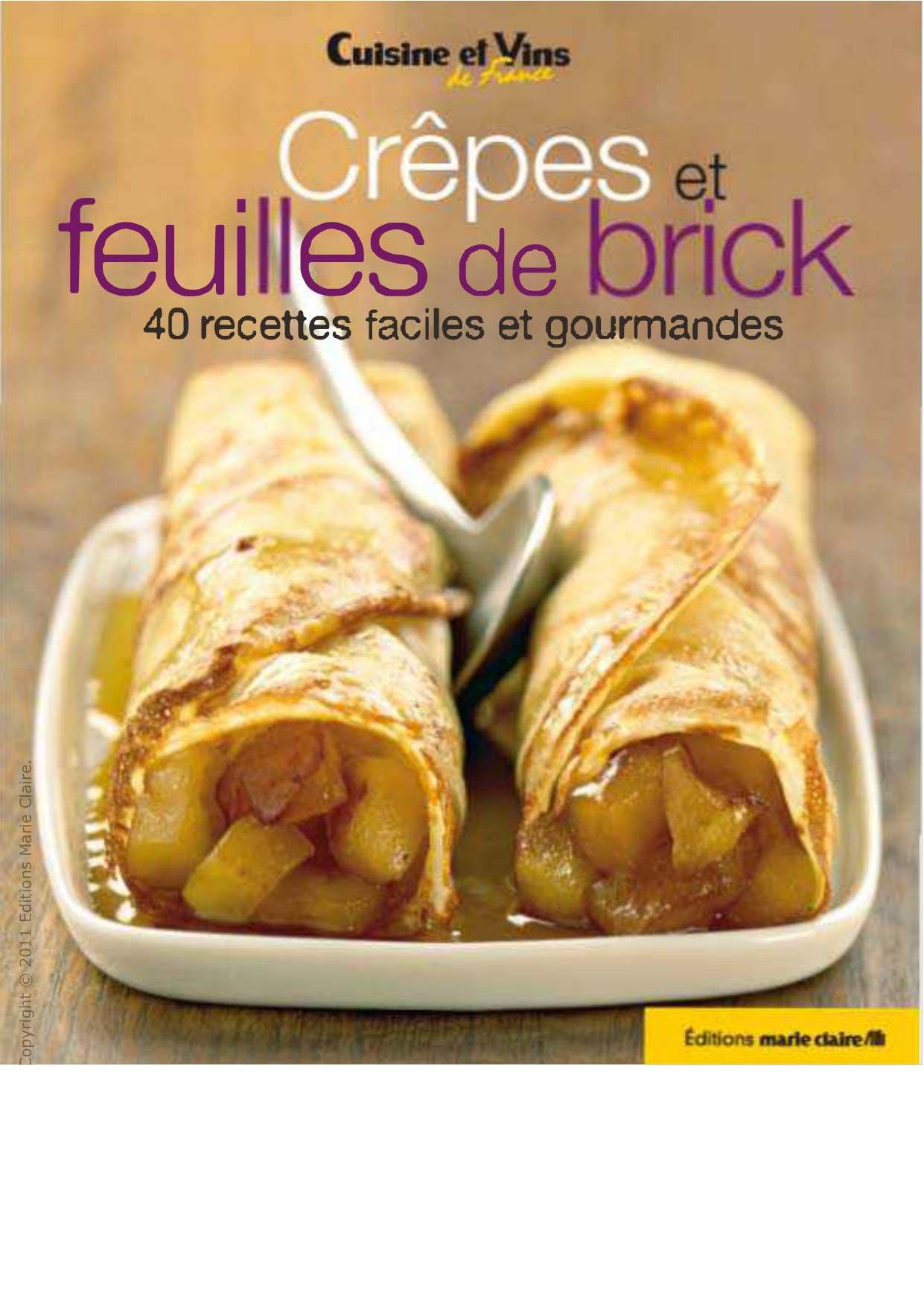 Synopsis : Tout le monde aime les crêpes et les feuilles de brick ! En version salée ou sucrée, elles "emballent" les petits comme les grands gourmands. Avec ces 40 recettes de Cuisine et Vins de France, faites le plein d'idées pour les cuisiner en entrées, plats ou desserts inventifs, délicieux et inratables !